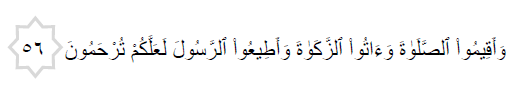 “Dan dirikanlah kamu akan sembahyang serta berilah zakat; dan taatlah kamu kepada Rasul Allah; supaya kamu beroleh rahmat.”