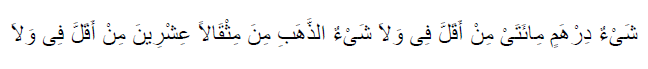 “Tidak ada zakat jika emas kurang dari 20 mitsqal dan tidak ada zakat jika kurang dari 200 dirham”